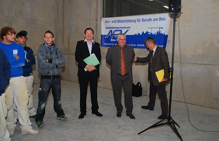 Stuck-Putz-Trockenbau, beglückwünschte die neuen Auszubildenden zu ihrer spannenden Berufswahl: "Welche Branche" so Heib, "bietet die Möglichkeit, Wolkenkratzer in den Himmel oder Straßen für Millionen von Autos zu bauen?"