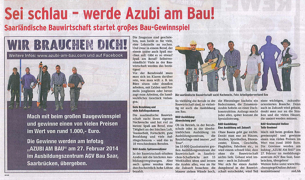 Mittwoch, 30. August 2023 – 13.00 Uhr im Ausbildungszentrum AGV Bau Saar – für Azubis des TGSBBZ Saarlouis
