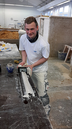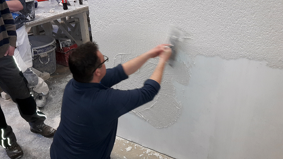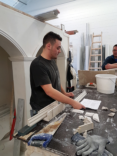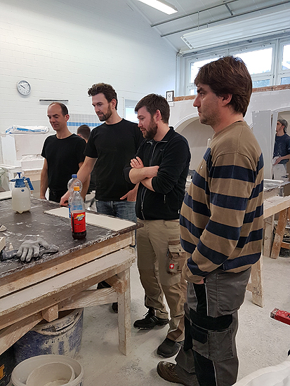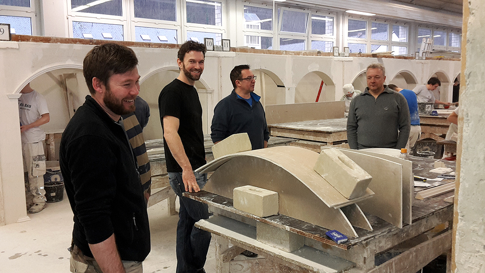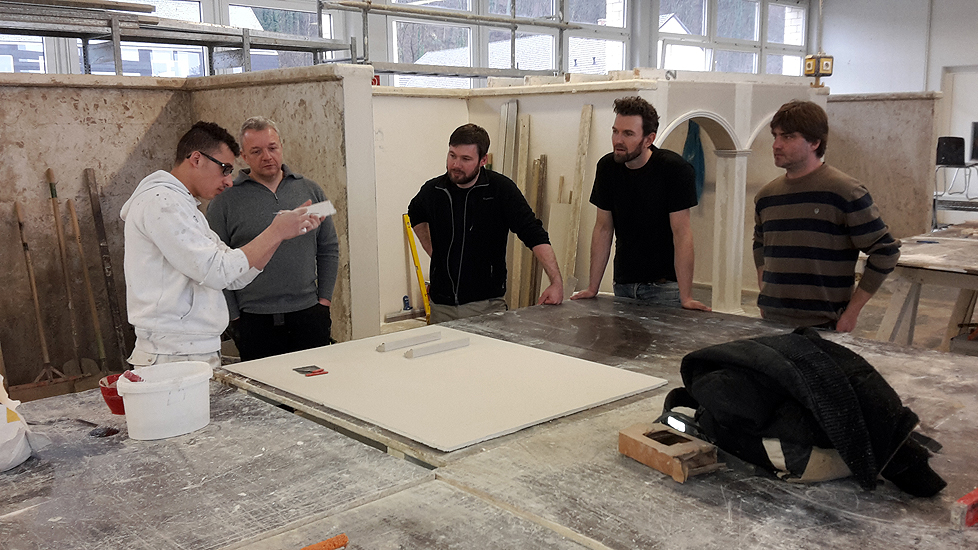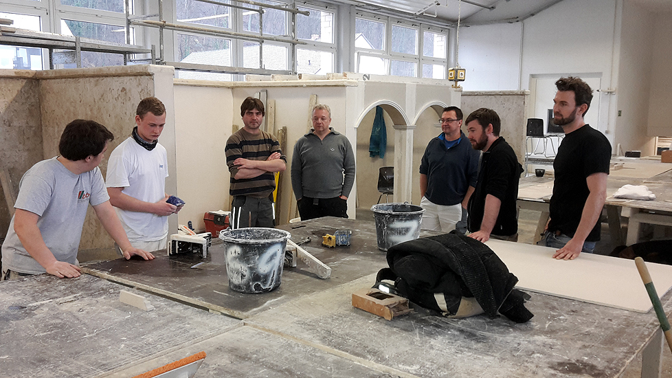 Stuckateurmeister Michael Detemple und die Gruppe St2 (Stuckateure 2. Lehrjahr) hatten ein straffes Programm vorbereitet.
