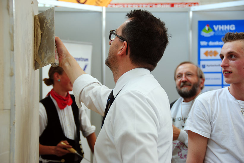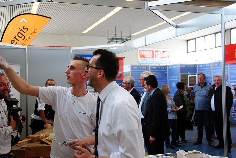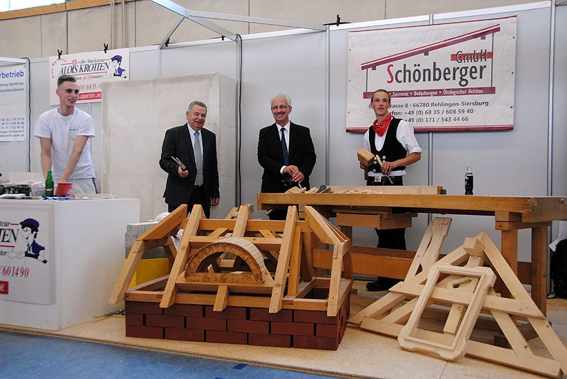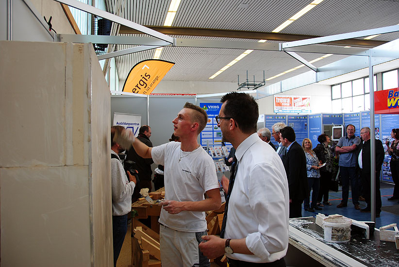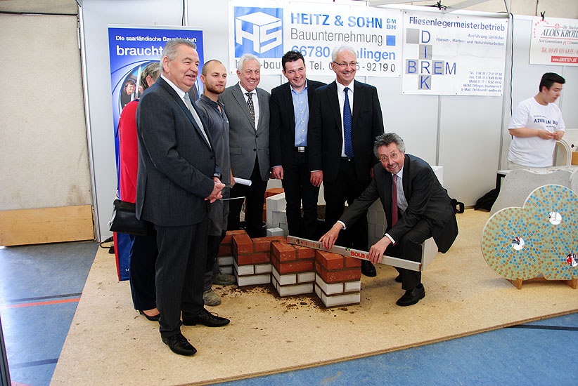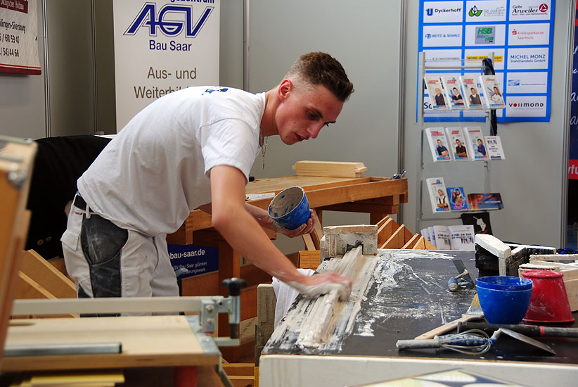Der AGV Bau Saar war mit seinem Ausbildungszentrum Bau mit einer lebenden Baustelle vor Ort und stellte verschiedene Ausbildungsberufe wie das Maurer-, Stuckateur- , Fliesenleger- und Zimmmererhandwerk vor und unterstützte seine Mitgliedsfirmen Heitz & Sohn GmbH, Alois Krotten GmbH, Schönberger GmbH und Fliesenlegermeister Dirk Brehm. Dass die Präsenz auch den jungen Azubis viel Spaß gemacht hat und bei den Besuchern gut ankam, beweisen die eingestellten Bilder.