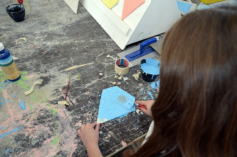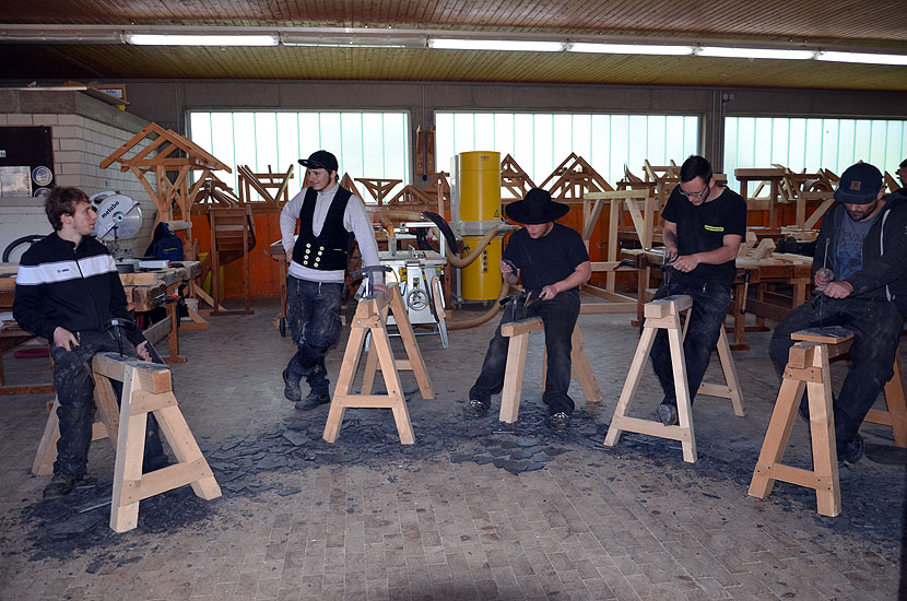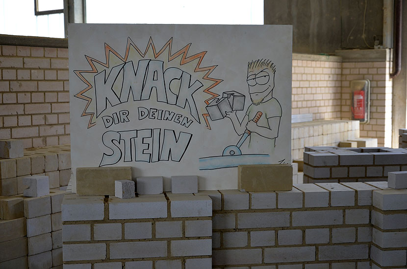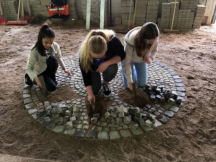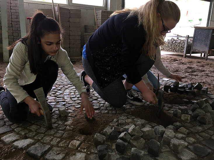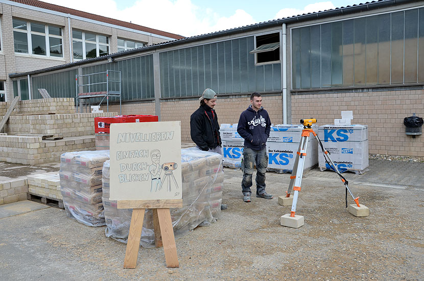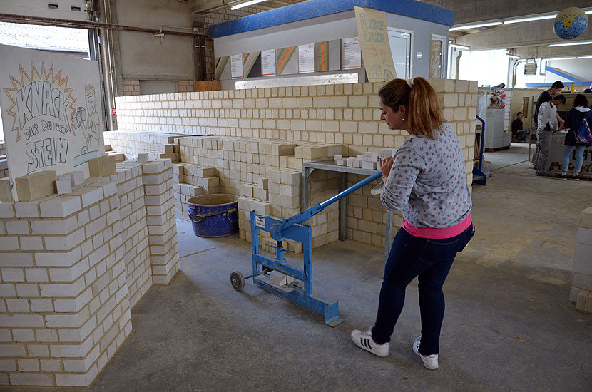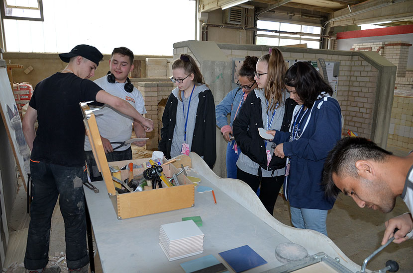Einige Mädchen kannten das Ausbildungszentrum bereits aus früheren Besuchen oder hatten sogar schon an einer Berufsorientierung teilgenommen. Begeistert bearbeiteten sie Schieferplatten, Fliesen, arbeiteten mit Putz und Farbe, mauerten, knackten Steine, schätzten Gewichte von Steinen, bearbeiteten Specksteine, nivellierten, sägten und nagelten.