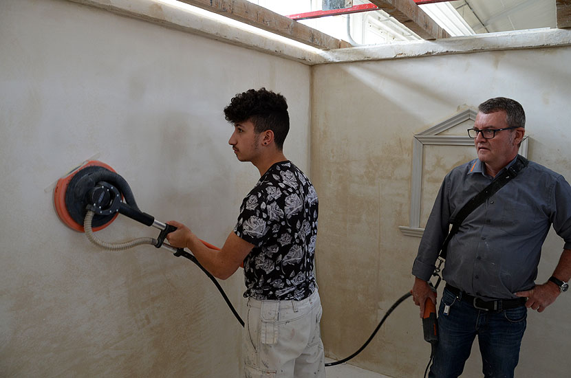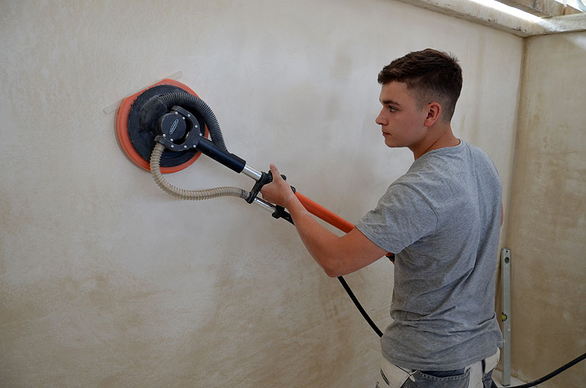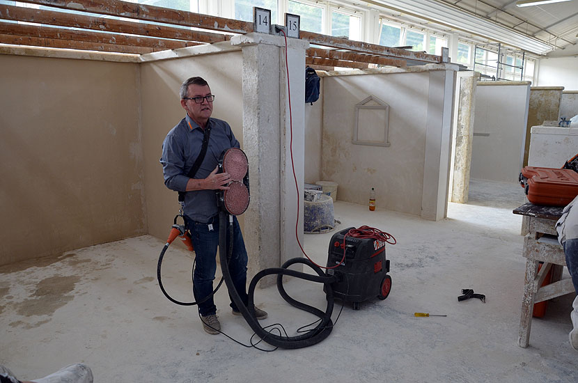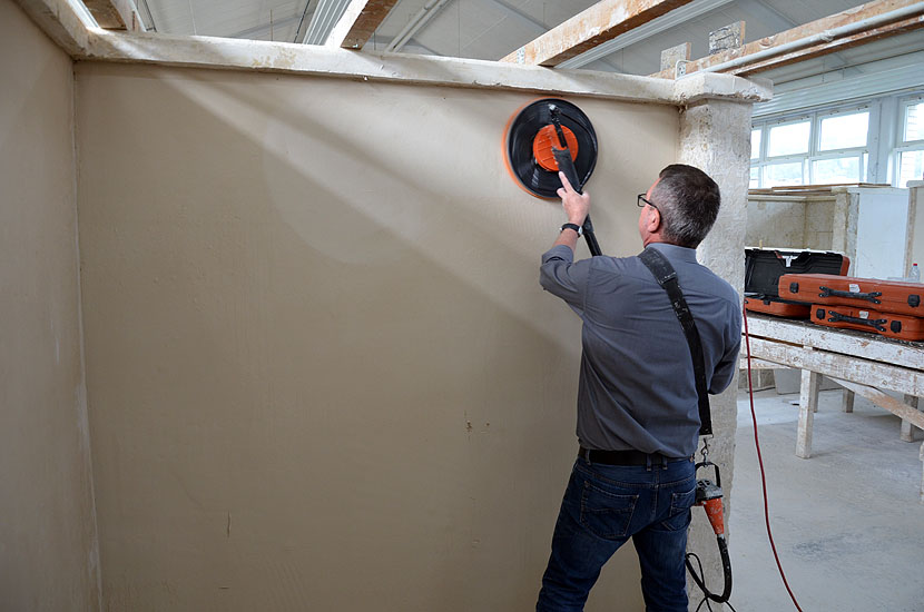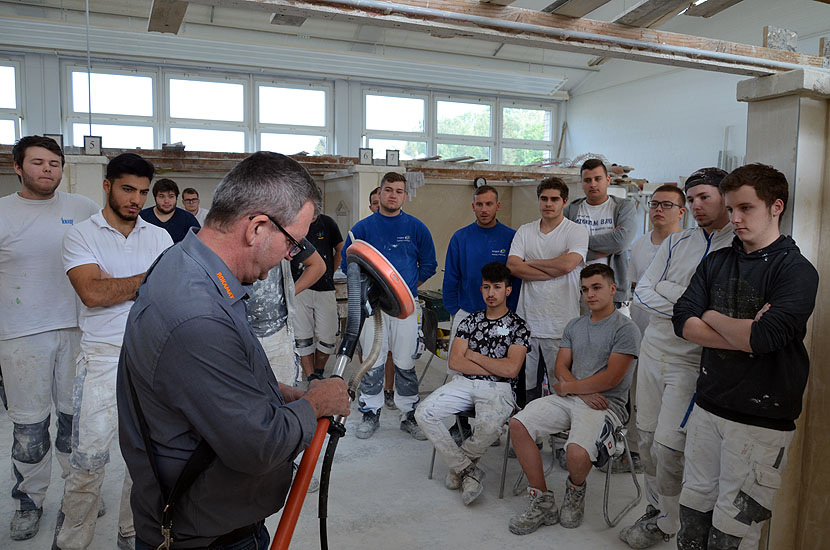 Die leichte Universalmaschine "Chameleon", der leichte Langhalsschleifer "Heron", der Turboschleifer "Gecko Rapid" und die Spezialfilzmaschine "Dry" auch als Akku Filzer wurden vorgestellt und konnten von den angehenden Stuckateuren ausprobiert werden.