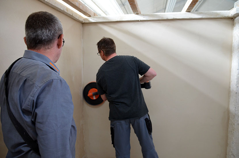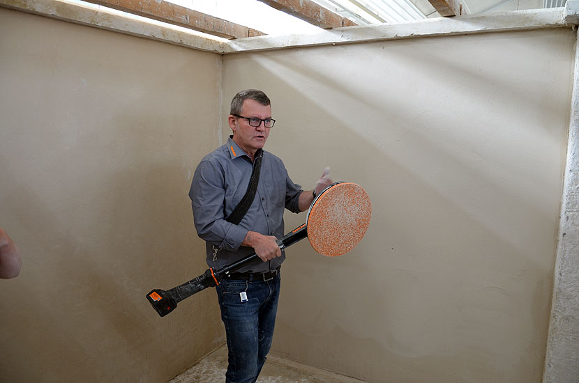 Herr Ralf Keppler stellte in einer rein praktischen Schulung verschiedene Geräte vor, die dem Stuckateur den harten Alltag auf der Baustelle ein wenig erleichtern.