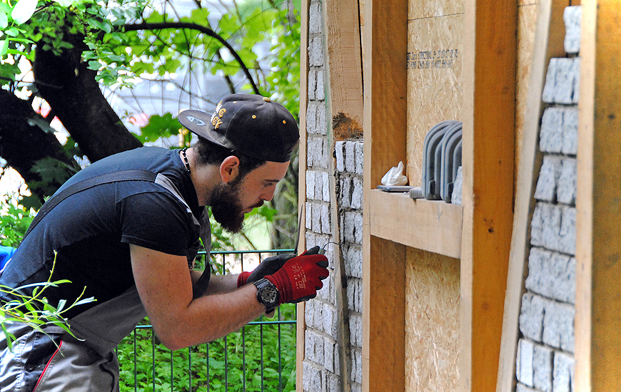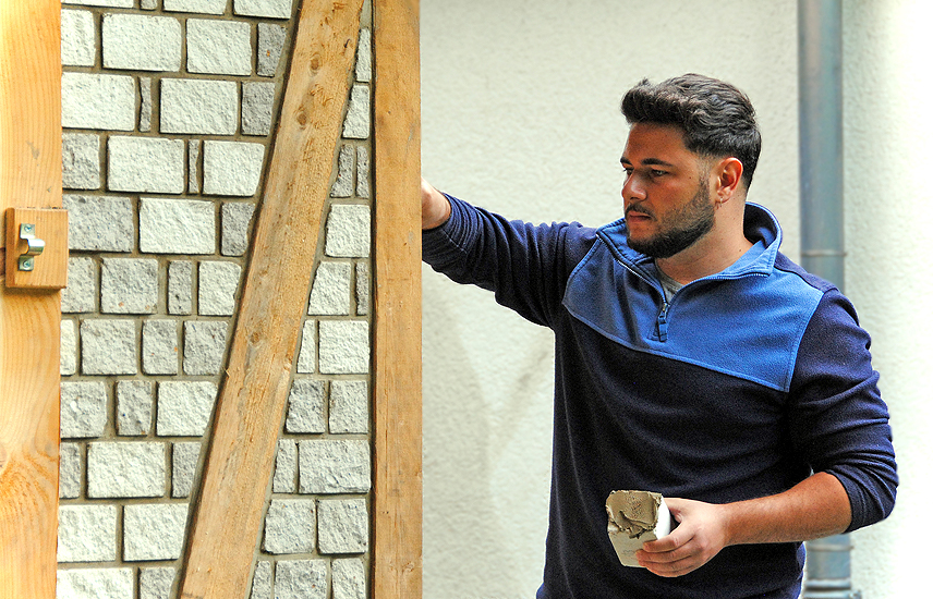 Abschließend haben Auszubildende des Maurerhandwerks die einzelnen Fachungen als Sichtmauerwerk ausgefacht.