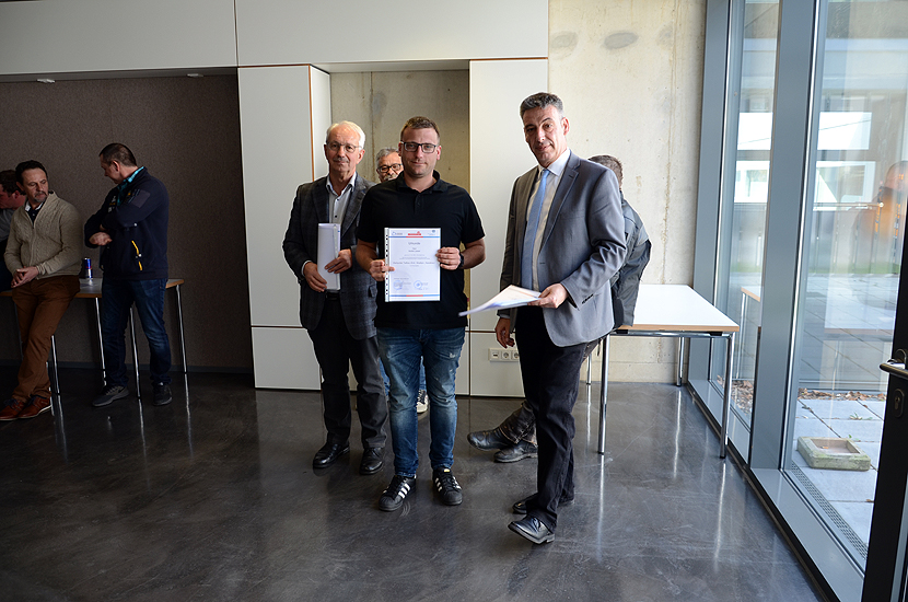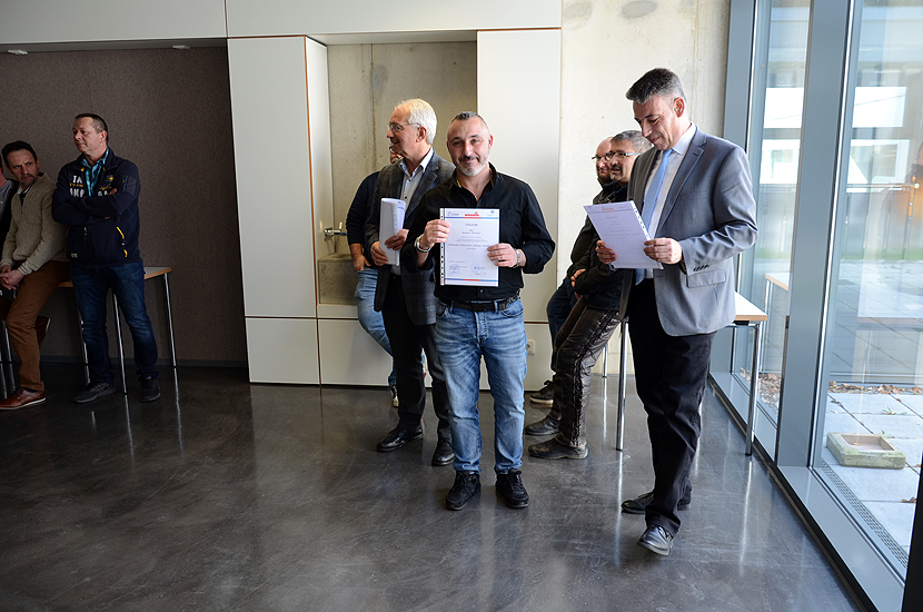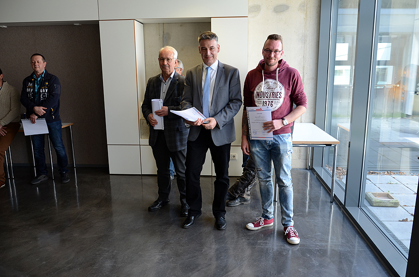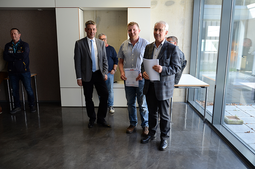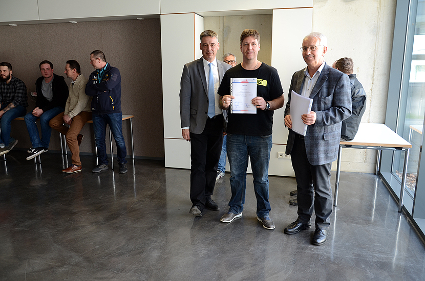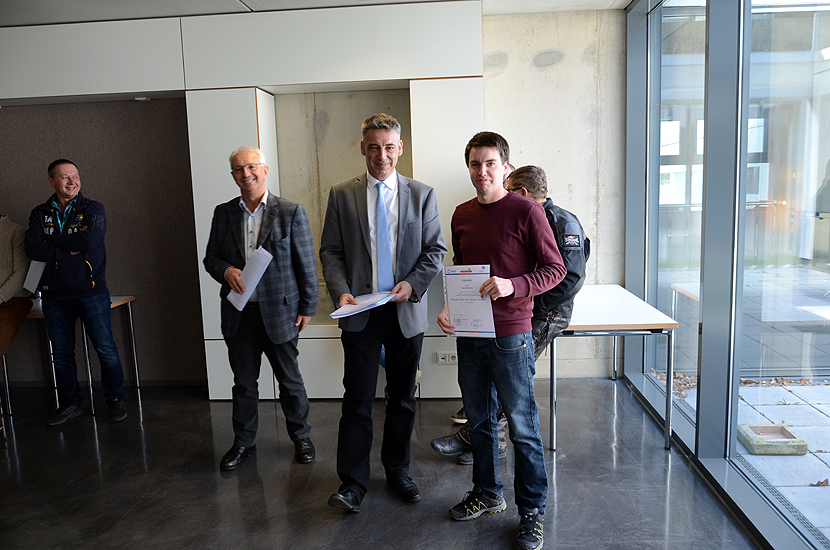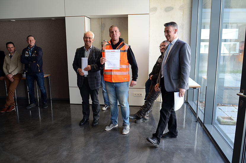 Im Rahmen einer kleinen Feierstunde wurden die Teilnehmer durch die Vorsitzenden der Prüfungsausschüsse, Herr Dipl.-Ing. Günther Heitz im Hochbau und Herr Dipl.-Ing. Matthias Glemser im Tiefbau, geehrt und die Urkunden mit Zeugnissen an die Teilnehmer übergeben.