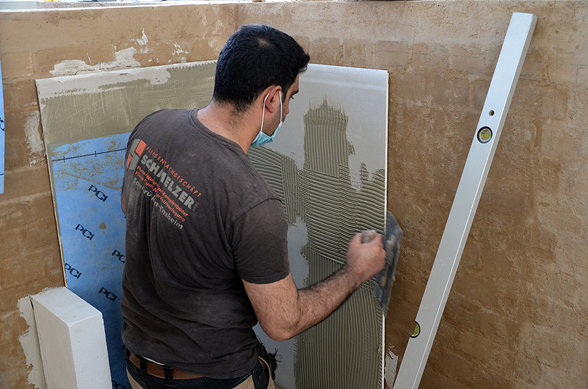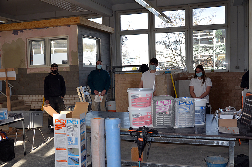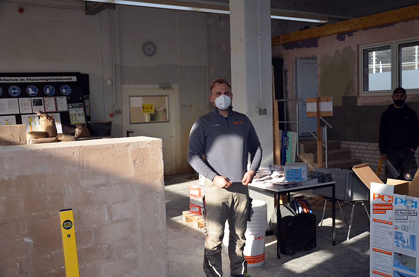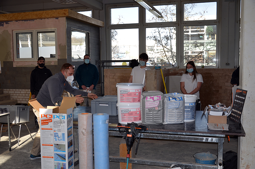 Unter Anleitung von Herr Jung, Anwendungstechniker der Fa. PCI, der in Theorie und Praxis den Stoff vermittelte, übten die Azubis an kleinen Werkstücken