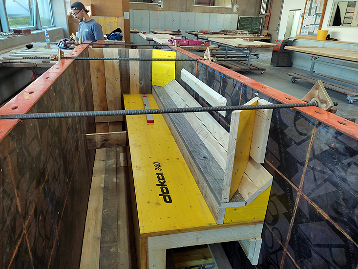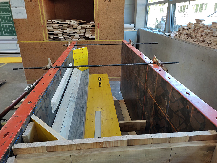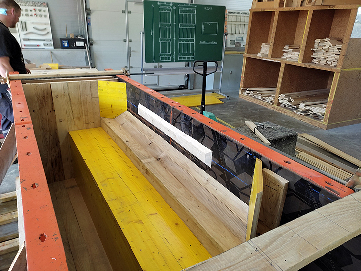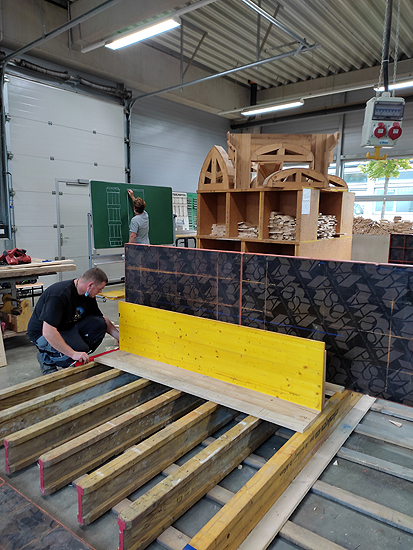 Die Aufgabenstellung für den diesjährigen Landes-Leistungswettbewerb des Beton- und Stahlbetonbauerhandwerks ist zwar in einem Satz erklärt, aber dennoch sehr anspruchsvoll. Sie lautet: Arbeitsprobe Erstellen eines Sturz-Fertigteils mit Auskragung, Gesims und Köcheraussparung.