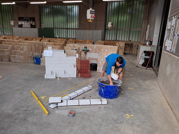 Die Teilnehmer erstellen in 7 ½ Stunden ein Ziermauerwerk, welches in zwei Abschnitte unterteilt ist. Das Mauerwerk besteht aus zwei 1 Kopf starken Wandscheiben, die sich unter 45° schneiden und im spitzen Winkel überlappend vermauert werden. Eine Flucht trägt die Jahreszahl des Wettbewerbs, die 10 bzw. 20 mm vorspringend vermauert wird. Die andere beinhaltet ein vorspringendes umrahmtes quadratisches Ornament, dass unter 45° stehend in das Mauerwerk integriert ist. Das Mauerwerk ist aus KSV bzw. VMz Normalformat zu erstellen und die Fugen werden 3 mm vertieft als Fugenglattstrich ausgeführt.