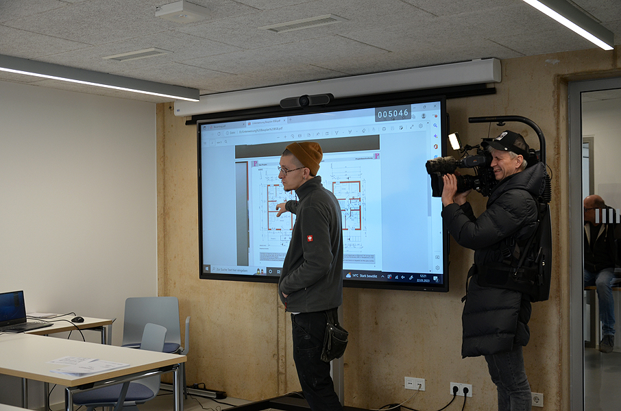 Der Besuch des SR war ein Highlight in der Woche vom 20.03.2023 für die Teilnehmer von Berufsstart Bau.
