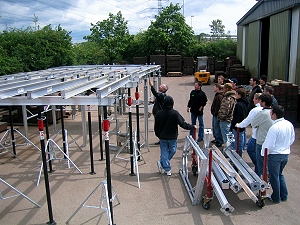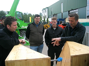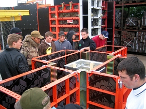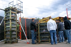 11 Auszubildende aus den Bereichen Hoch- und Tiefbau und die Ausbildungsmeister Johannes Hoffmann und Thomas Lang besuchten am 11.05.2007 die Leistungsschau der Firma HSB Handels- und Servicegesellschaft für Baumaschinen in Ensdorf. Nach einer freundlichen Begrüßung ließ es sich der Firmengründer Herr Rupp nicht nehmen, die Gruppe selbst durch die Hausausstellung zu führen. Neben vielen Baugeräten wie Turmdrehkrane, Mini-, Kompakt- und Großbagger, Teleskoplader, Walzen und Zubehör gab es auch die Abbruch-, Umwelt und Aufbereitungstechnik zu sehen. Die Schalungstechnik von Stützen-, Wand- und Deckenschalungen wurde von Herrn Carsten Rupp vorgestellt und erläutert. Zum Abschluss lud die Firma HSB zu einem kleinen Imbiss ein, so dass auch für das leibliche Wohl bestens gesorgt war.