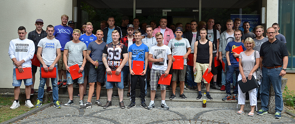 37 Auszubildende im Dachdeckerhandwerk haben heute im Ausbildungszentrum Ihre Gesellenprüfung bestanden. Mit einer kleinen Feier wurden die neuen Gesellen von den Mitgliedern des Prüfungsausschuss und dem Leiter des Ausbildungszentrums, Herrn Markus Pirron, verabschiedet. Für gute Leistungen erhielten Felix Schmidt und Markus Krämer Weiterbildungsgutscheine in Höhe von 100,00 € und 50,00 €. Bester der diesjährigen Gesellenprüfung im Dachdeckerhandwerk ist Sebastian Braun. Dafür erhielt er aus den Händen von Markus Pirron einen Weiterbildungsgutschein in Höhe von 150,00 €.